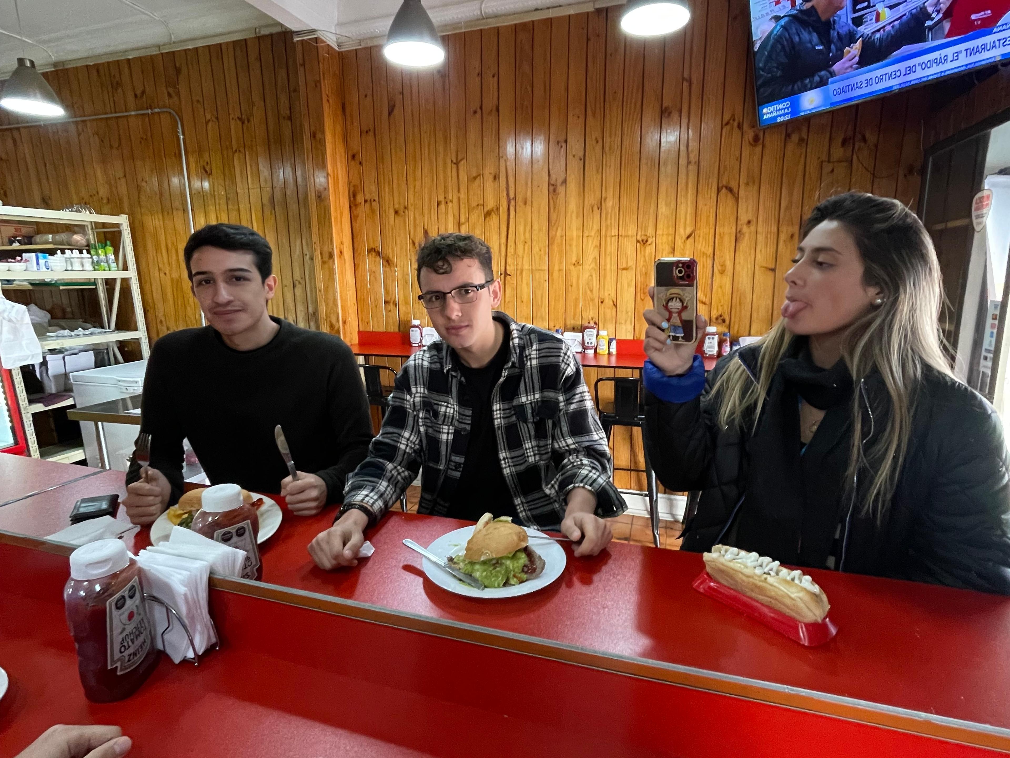 Acá estábamos los chicos, el primer día de Startup Chile que podíamos ir todos, comiendo a las 12 de la mañana en una fuente.